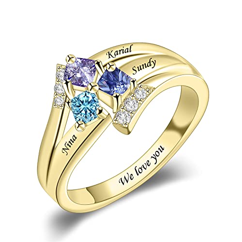BAUMA AUTO Personalized Mothers Rings with 1-9 Simulated Birthstones Custom Anniversary Rings for Women Family Name Rings for Mom 1