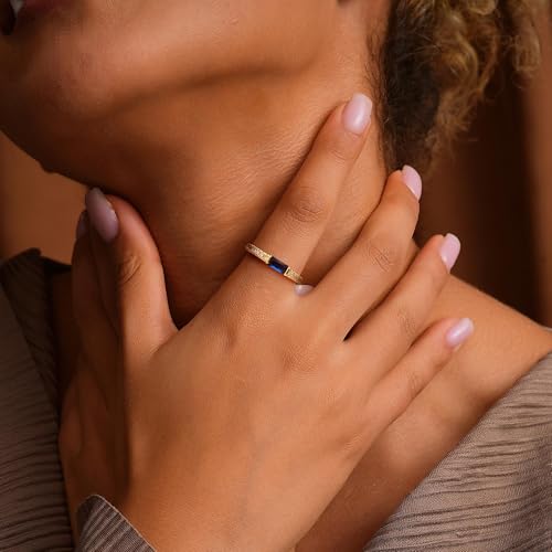• Elegant Baguette Birthstone Design: Featuring a vibrant rectangular birthstone centerpiece encircled by glittering white zirconia accents, this dainty rings for women blends new-age geometry with timeless sparkle. Crafted for gold rings for women lovers seeking delicate yet meaningful birthstone rings for women outstanding for daily wear.