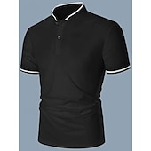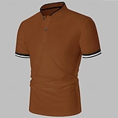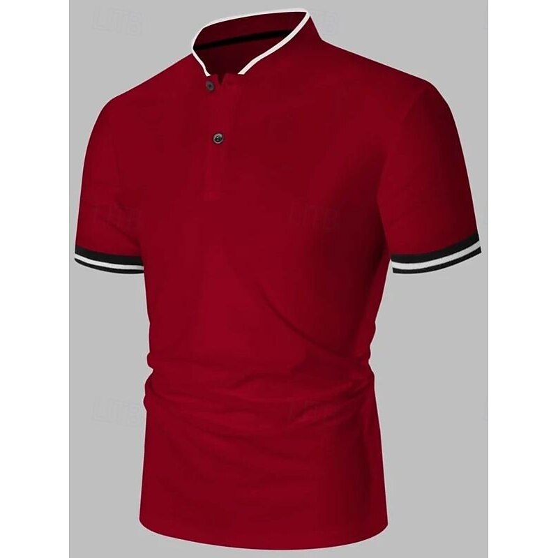 Men's Polo Shirt Collarless Golf Shirts Casual Holiday Stand Collar Short Sleeve Fashion Basic Plain Button Summer Regular Fit Dark Brown Dark Red Black White Polo Shirt