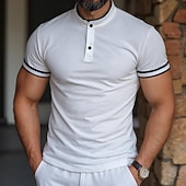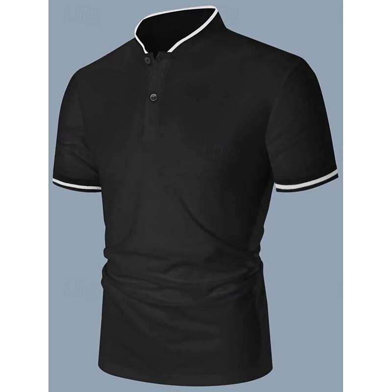 Highlights [Fabric]: Crafted from a breathable polyester fabric, this men's polo shirt offers a soft touch and micro-elasticity for a comfortable experience during the summer season. [Fit]: Featuring a regular fit, it provides a relaxed yet flattering silhouette, making it suitable for both casual outings and holiday events. [Design Highlights]: The shirt boasts a contemporary stand collar with a button placket, giving it a clean and modern look. Its plain design is enhanced by contrasting black buttons and double stripes on the sleeves, adding a sporty elegance to the overall appearance. [Occasions]: Ideal for holidays and casual occasions, this versatile shirt pairs perfectly with jeans or chinos for a laid-back yet sleek ensemble. [Size Range]: Available in a wide range of sizes from S to 3XL, offering a perfect fit for a wide variety of body types. Perfect for everyday use. first-class materials and excellent craftsmanship ensure long-lasting durability.