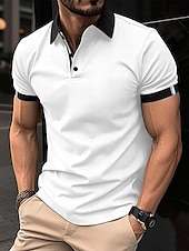 Men's Polo Shirt Work Street Classic Short Sleeves Solid / Plain Color Basic Summer Loose Fit dark brown Black White Pink Dark Navy ash-colored Polo Shirt 36