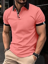 Men's Polo Shirt Work Street Classic Short Sleeves Solid / Plain Color Basic Summer Loose Fit dark brown Black White Pink Dark Navy ash-colored Polo Shirt 9