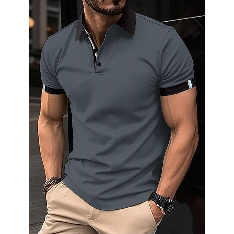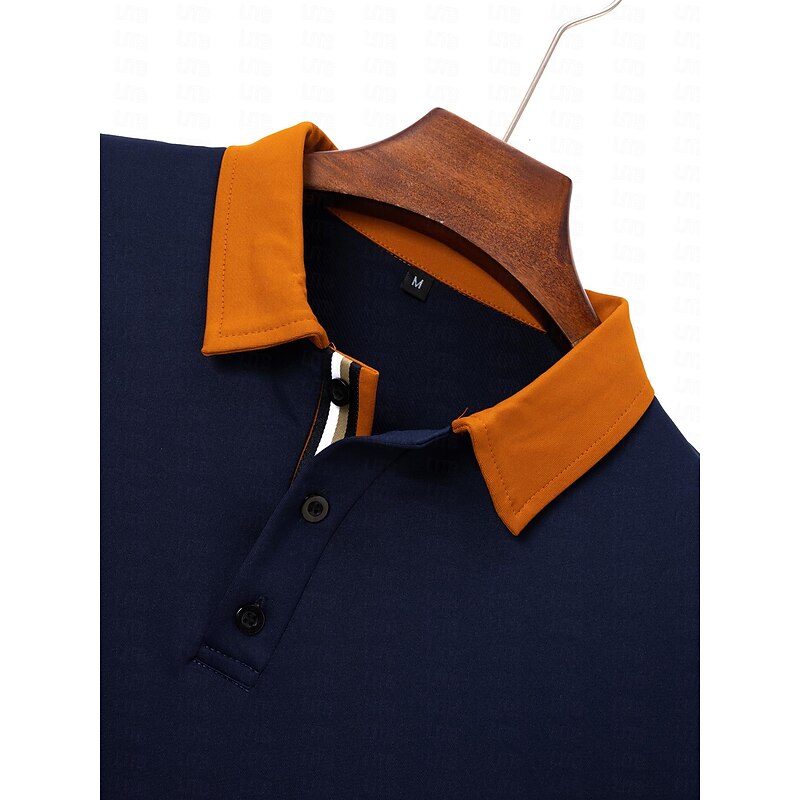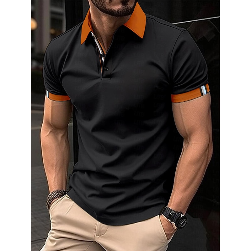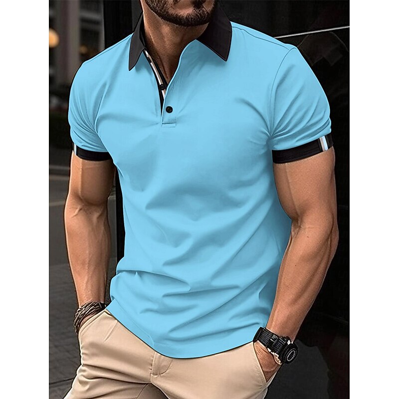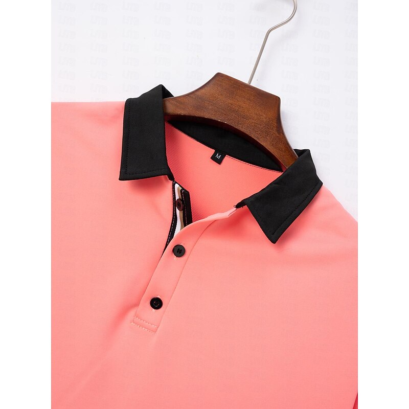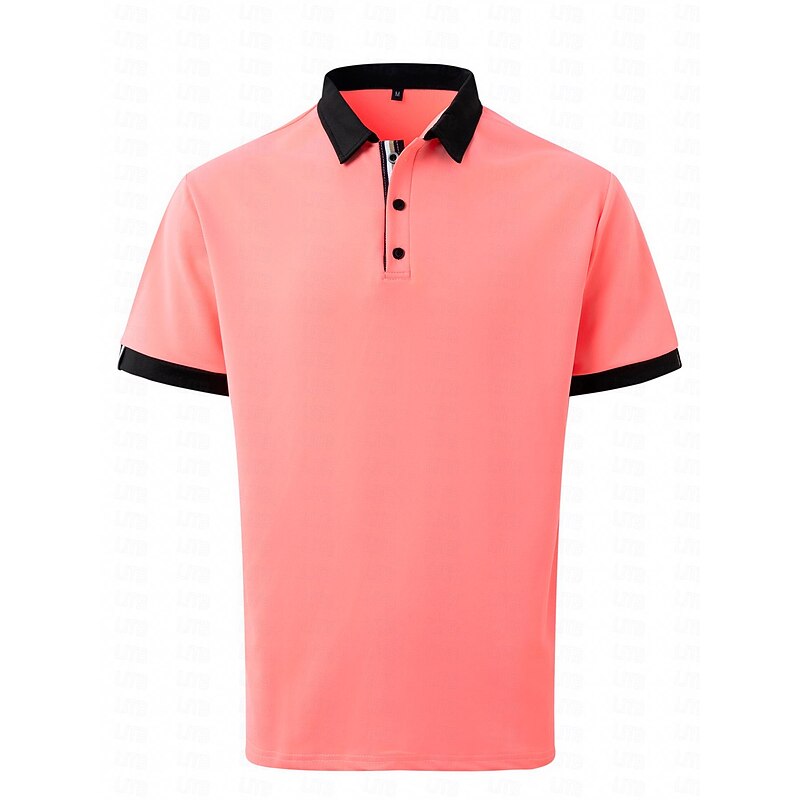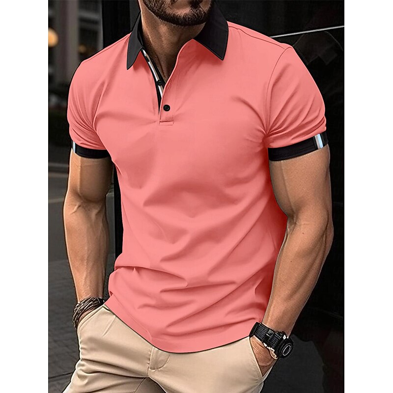 Highlights [Men's Polo Shirt Highlights] [Fabric:] Crafted from a high-quality blend of polyester and cotton, this polo shirt promises excellent breathability and comfort. The fabric's high elasticity ensures a relaxed fit, making it ideal for warmer summer days. [Fit:] Designed with a loose fit silhouette, this shirt is perfect for those who prefer a more relaxed style. The tailored cut subtly highlights the physique, offering a balance between comfort and style. [Design Highlights:] Featuring a retro polo design, the shirt comes with a contrasting black collar and cuff details that add a touch of elegance to the overall aesthetic. The traditional buttoned placket allows for an adjustable opening, adding versatility to your wardrobe. [Occasions:] This polo shirt is suitable for a variety of settings, including streetwear, casual gatherings, sports events, and even work environments. Its versatile nature makes it a staple piece for any occasion. [Size Range:] Available in a wide range of sizes from S to 3XL, ensuring a suitable fit for various body types. The shirt comes in multiple colors, including White, Black, Light Blue, Aquamarine, Dark Navy, Ash-Colored, Dark Brown, and Pink, allowing for personalization according to preference.