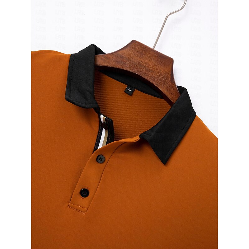 Men's Polo Shirt Work Street Classic Short Sleeves Solid / Plain Color Basic Summer Loose Fit dark brown Black White Pink Dark Navy ash-colored Polo Shirt 5
