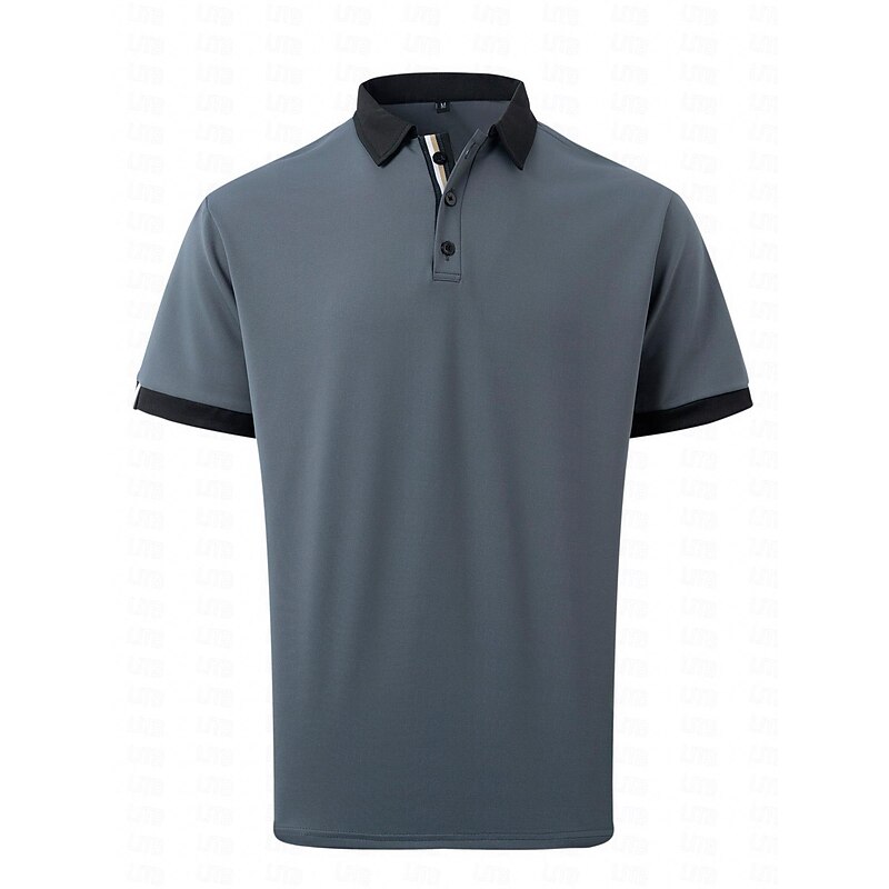 Men's Polo Shirt Work Street Classic Short Sleeves Solid / Plain Color Basic Summer Loose Fit dark brown Black White Pink Dark Navy ash-colored Polo Shirt 27