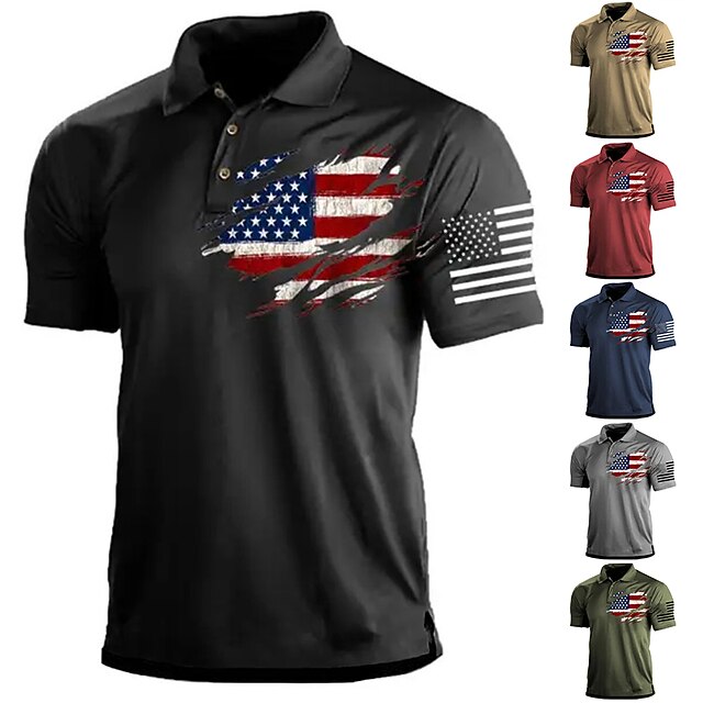 popular ! Men's American Flag Veterans Polo Shirts Golf Shirt Short Sleeve Polo Shirts Collared Shirts Casual Streetwear Vacation Wear Party Outfits Buttons 3D Print Black Red Navy Blue