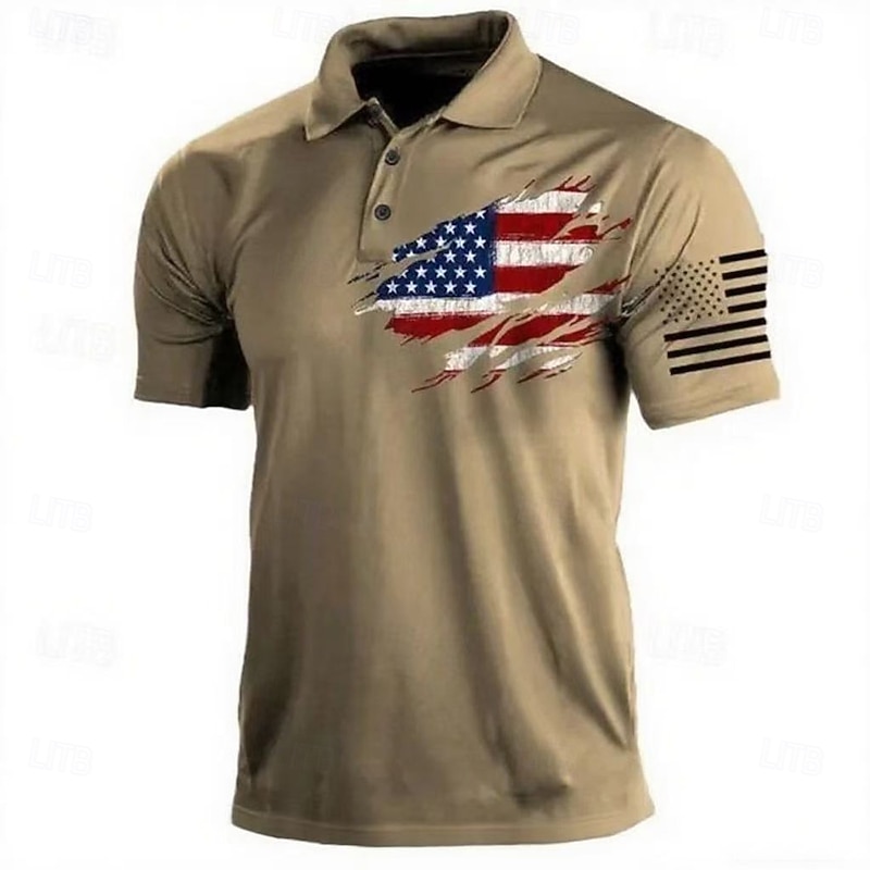 Men's American Flag Veterans Polo Shirts Golf Shirt Short Sleeve Polo Shirts Collared Shirts Casual Streetwear Vacation Wear Party Outfits Buttons 3D Print Black Red Navy Blue 7