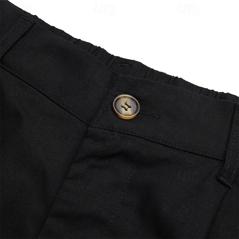 More information about Men's Shorts Linen Shorts Dress Shorts Summer Shorts Pleated Shorts Pocket Pleats Straight Leg Plain Comfort Breathable Knee Length Formal Work Daily Fashion Streetwear Black White Inelastic