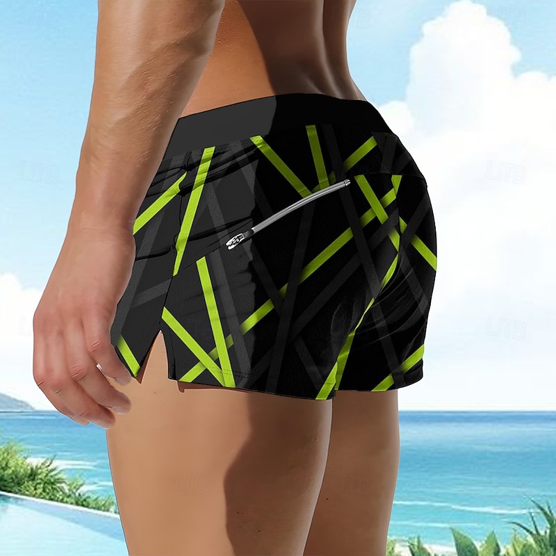 This Men's Mixed Color Geometric Pattern Line Swim Trunks Swim Shorts Board Shorts Mid Waist 3D Print Hawaiian Surfing Holiday Beach Drawstring with Mesh lining Elastic Waist Designer Clothing Apparel combines elegant design with practical functionality. Every detail has been carefully considered to ensure you get the top possible experience. The top-grade construction means this product will serve you well for years to come.