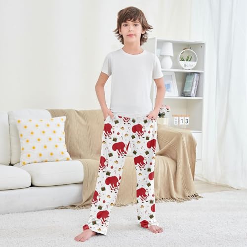 CaTaKu Boys Cute Santa Claus Candies Pants for Boys Girls Wide Leg Sweatpants Kids Long Bottoms with Pockets Size 6-14Y