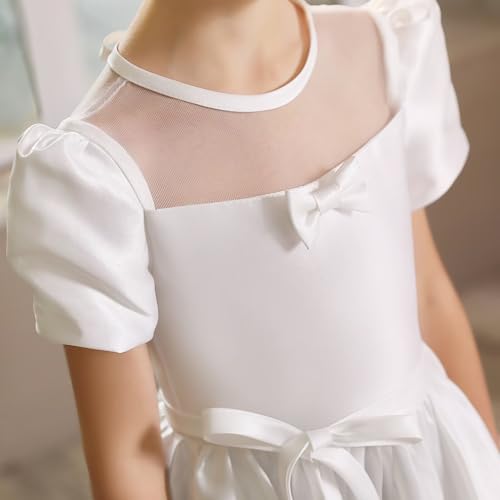 Flower Girl Dresses for Wedding Satin Short Sleeves First Communion Dress with Bow 6