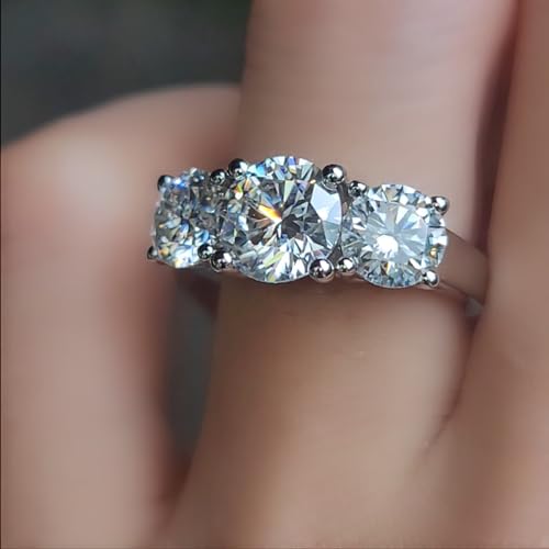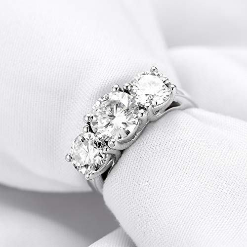 DovEggs 3 Stone Moissanite Engagement Rings for Women,4ct Center 6.5mm-8mm-6.5mm FGH Color H&A Cut Moissanite Wedding Rings Anniversary 14K Gold QUALITY Sterling Silver Ring 5