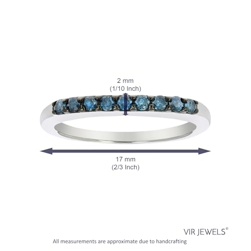 1/4 cttw Blue Diamond Ring Wedding Band .925 Sterling Silver Prong Set Round 7