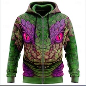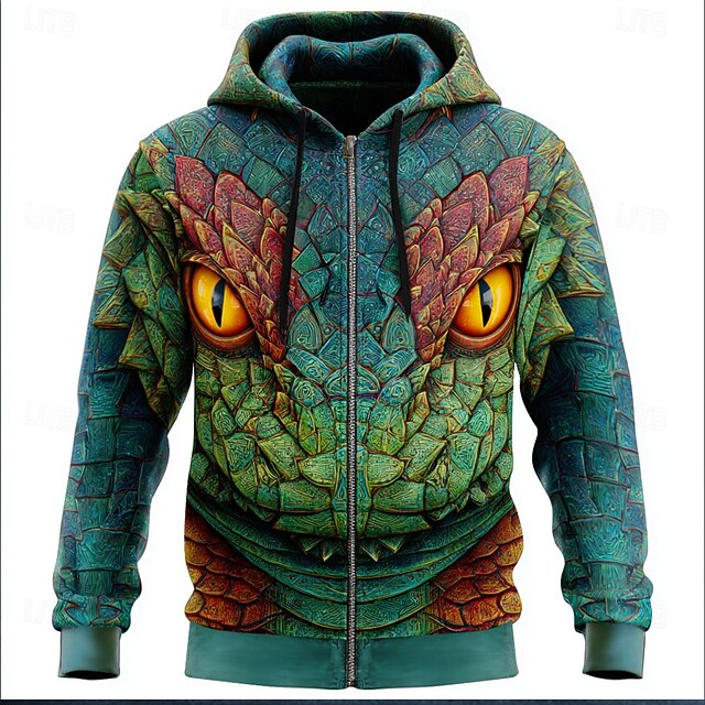 Why Choose Men's Dragon 3D Hoodie Jacket Sweatshirt Fantasy complete Over Print Zip Vacation Going out Streetwear Blue Dark Green Zipper Fall Winter Designer?
