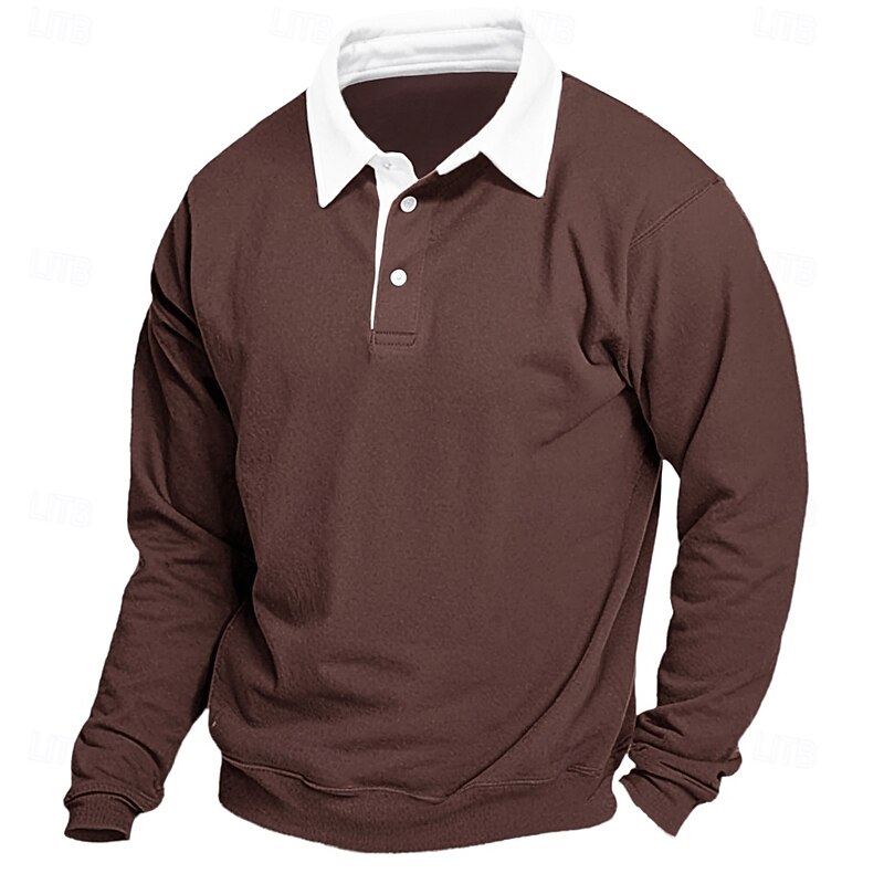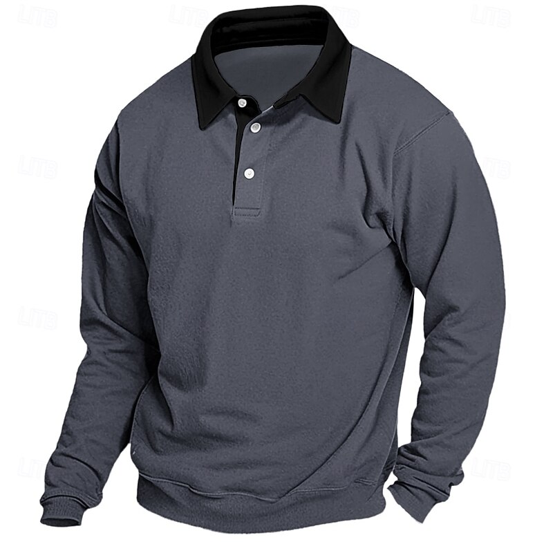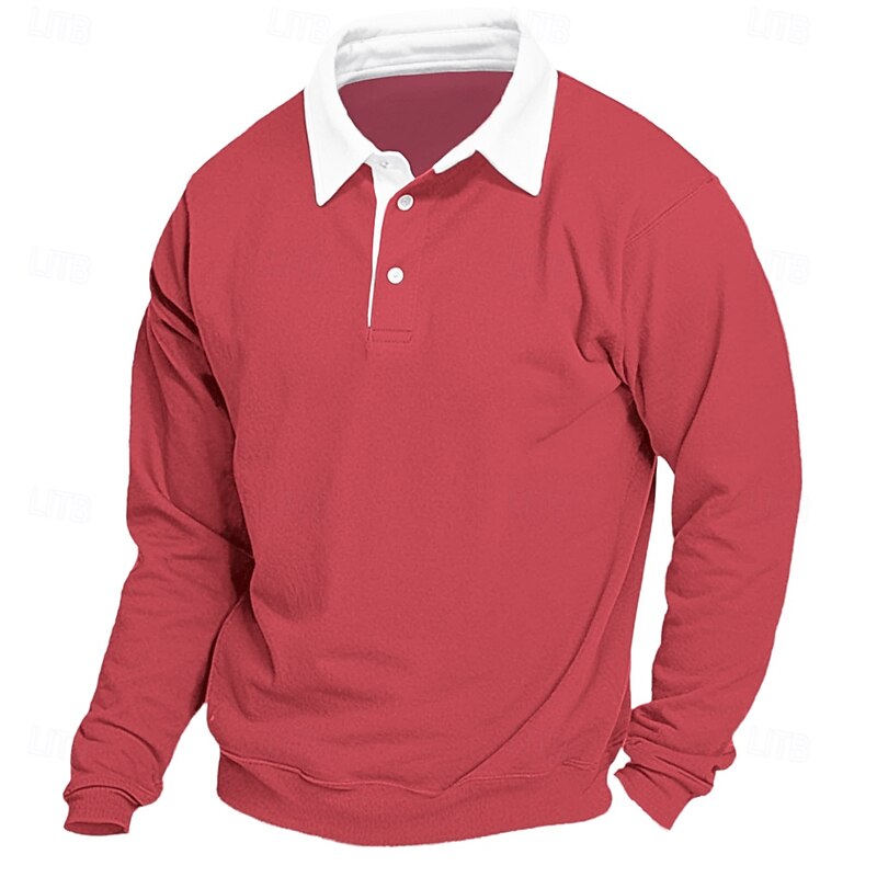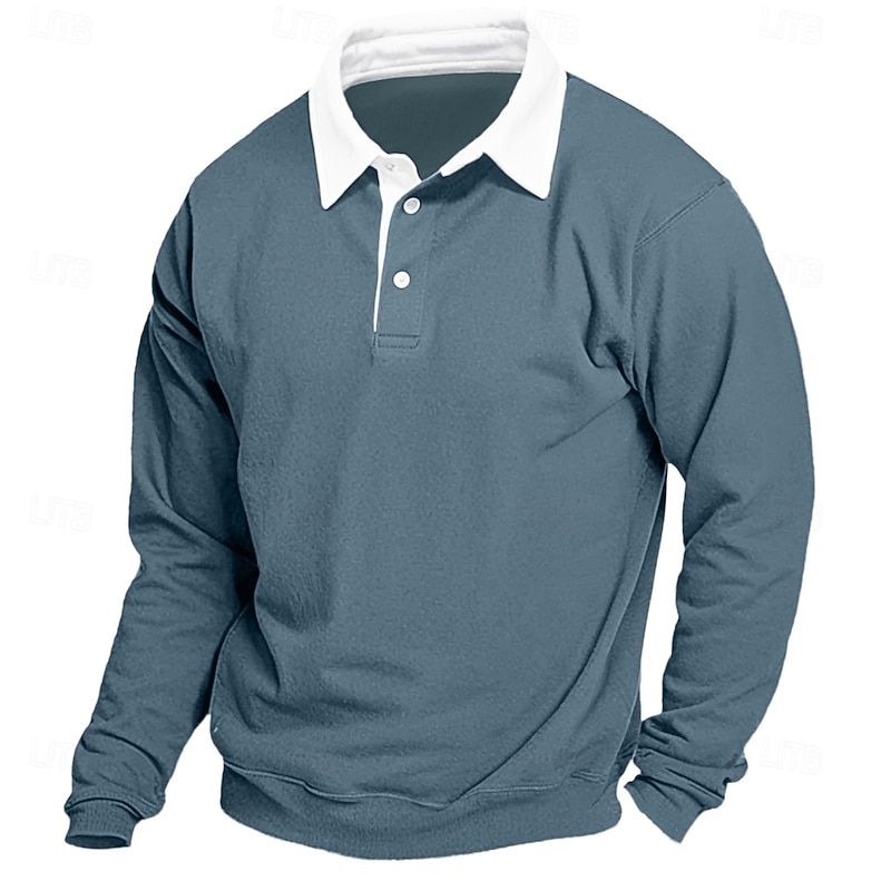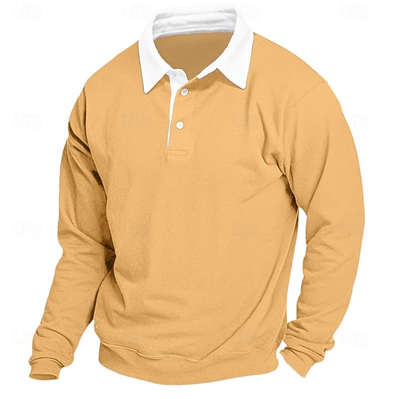 More information about Men's Sweatshirt Denim Blue Black Yellow Red Navy Blue Polo Collar Color Block Patchwork Work Casual Sports Basic Spring & Fall Cross-Seasons Clothing Apparel Hoodies Sweatshirts