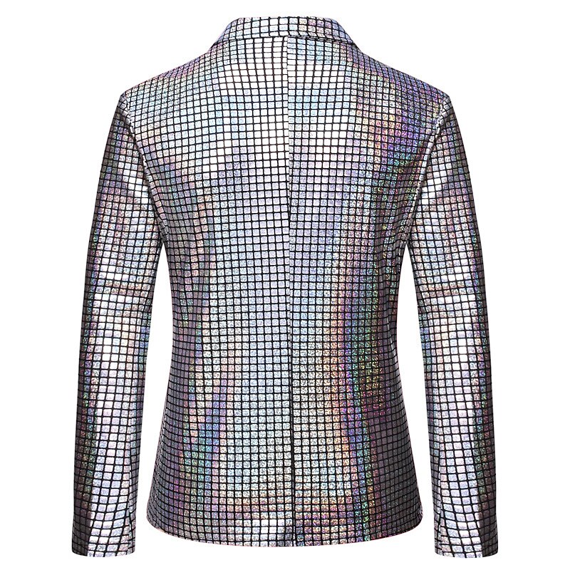 More information about Men's Jacket Blazer Party Evening Wear Bar Party Favor Vintage Skinny Polyester Stripes and Plaid Glitter Windproof Single Breasted Blazer Silver Gold Rainbow