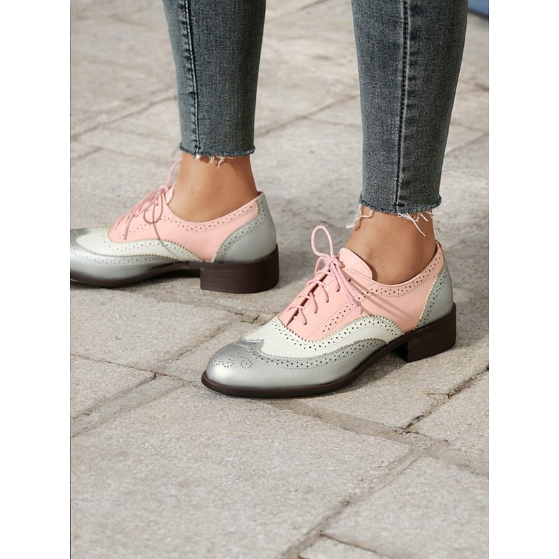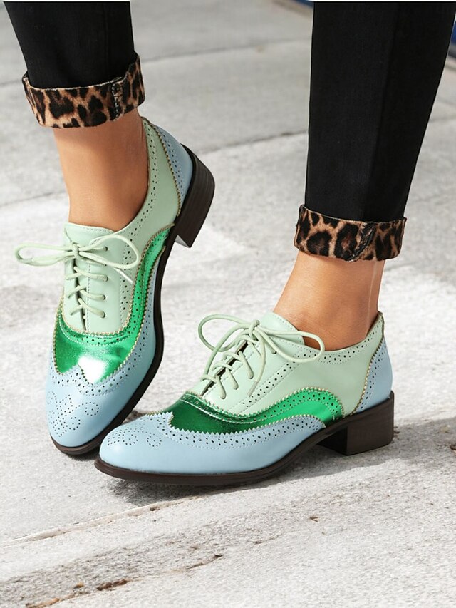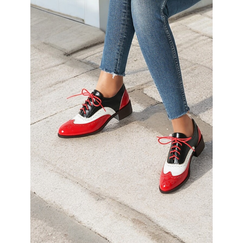 Highlights [Material & Craftsmanship] : Crafted from premium PU leather with a synthetic leather lining, these Women's Oxford Shoes ensure both durability and comfort. The rubber outsole offers a reliable grip, making these shoes suitable for various surfaces while maintaining a vintage appeal. [Style & Fit] : With a enduring lace-up closure, these shoes provide a customizable fit that complements their timeless design. The round toe and chunky heel offer both comfort and a slight elevation, suitable for extended wear throughout the day. [Design Highlights] : Featuring intricate brogue detailing and a sophisticated color block pattern, these Oxfords combine light red, pink, white, green, and blue hues to create a vibrant, eye-catching contrast. The combination of perforations and decorative stitching adds a touch of retro charm to this vintage-inspired piece. [Occasions] : Ideal for both daily and work settings, these versatile shoes effortlessly enhance both casual and semi-formal outfits. They are perfect for year-round wear, fitting seamlessly into your spring, summer, fall, and winter wardrobe. [Size Information] : These Oxfords come in a range of sizes, from US5.5/EU35/UK3.5 to US10.5/EU42/UK8.5. The shoes are designed according to standard sizing, so you can comfortably select your usual size for an optimal fit. Perfect for everyday use. first-class materials and excellent craftsmanship ensure long-lasting durability.
