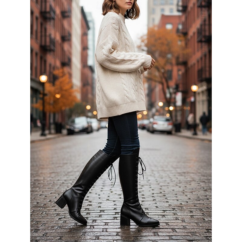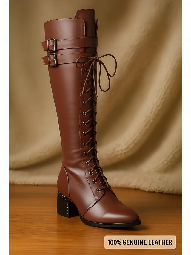 This Women's Genuine Leather Knee High Boots, Premium Cowhide Material, Lace-Up and Buckle Detail, Block Heel, Urban Casual Fashion Footwear for Women combines elegant design with practical functionality. Every detail has been carefully considered to ensure you get the ultimate possible experience. The top-grade construction means this product will serve you well for years to come.