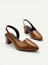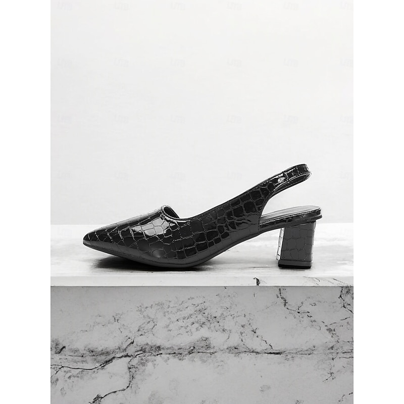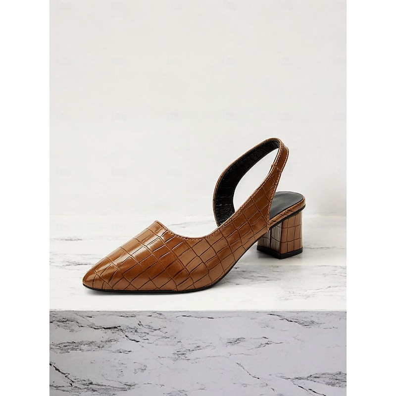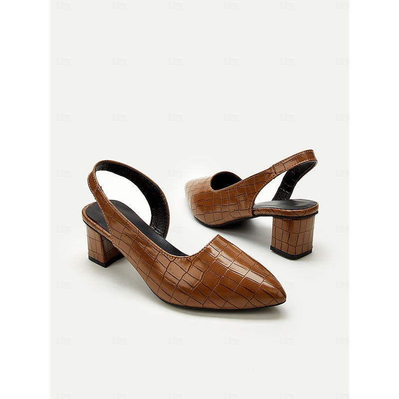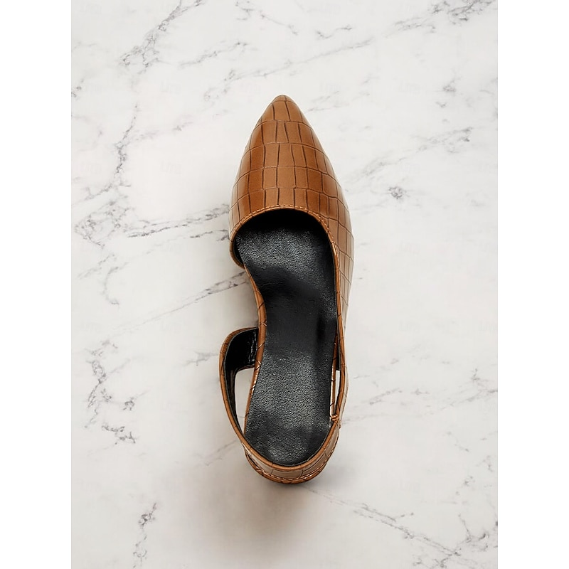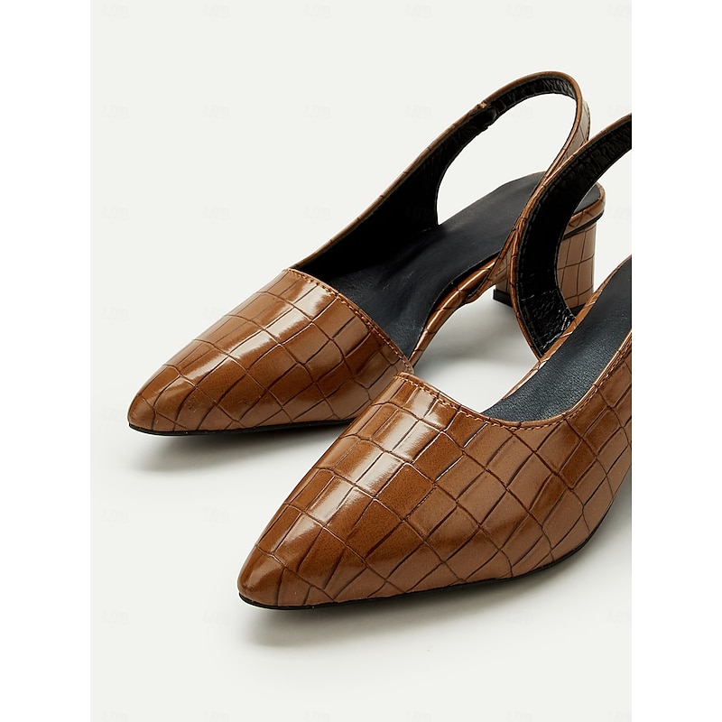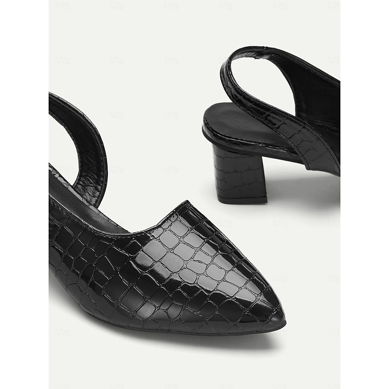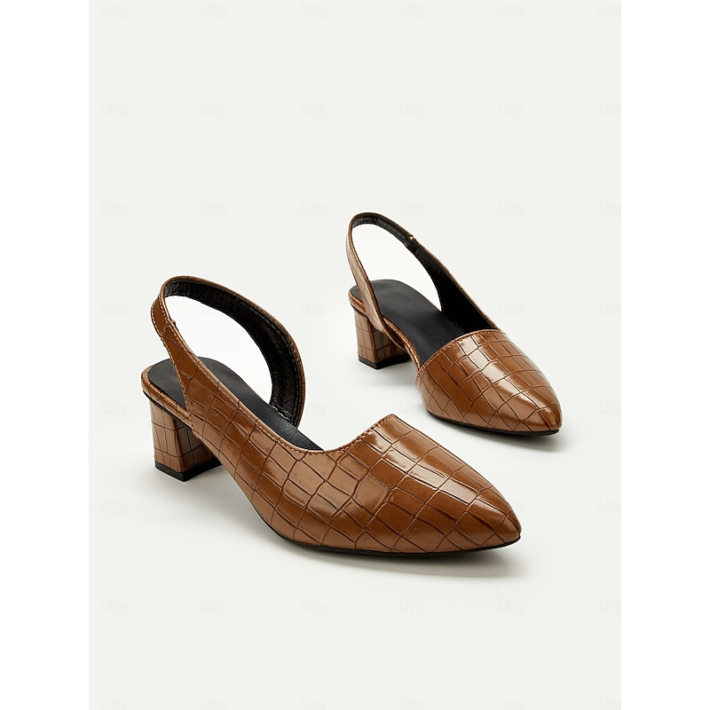 popular ! Women's Black and Brown Crocodile Print Pointed Toe Heels - Elegant Leather Pumps for Professional and Evening Wear