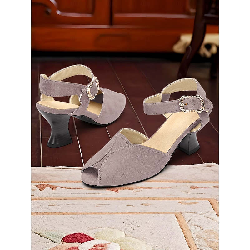Highlights - Luxurious faux suede upper for a sophisticated look - Soft synthetic leather lining for comfort - chic buckle embellishment for added flair - Sturdy chunky heel for stability and style - enduring round toe shape for a timeless appeal - Durable rubber outsole for long-lasting wear