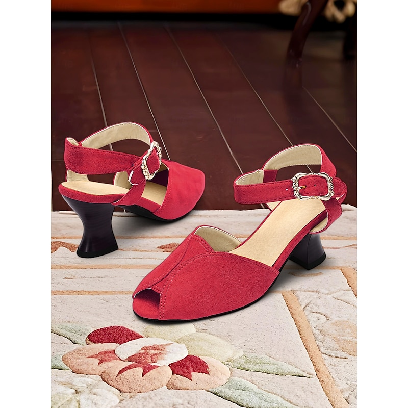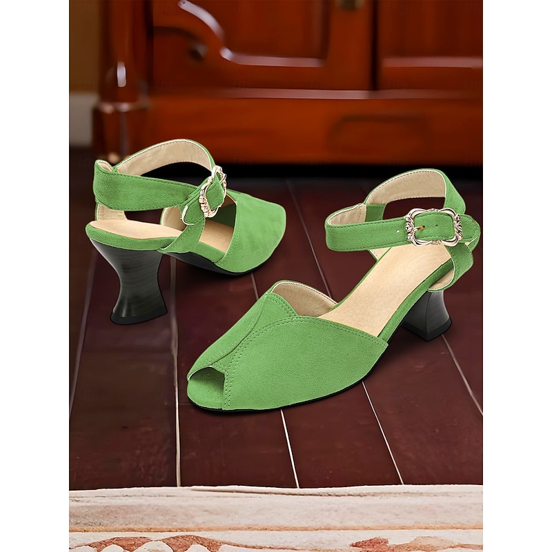 More information about 1930s Style Women's Yellow Peep Toe Buckle Sandals – Vintage Mid Heel Dance Shoes for Evening Party & Formal Events