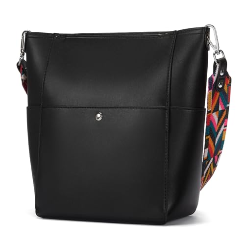 Fabric type: LeatherOrigin: ImportedClosure type: MagneticMaterial: The leather bucket bag is made of top-grain cowhide with resilient gold metal hardware and sturdy metal magnetic buckle. The independent small storage bag is lined with durable fabric. This is a high-end and practical bucket bag that shows off the charm of womenDimensions: The leather bucket bag measures 11.02 (L) x 5.12 (W) x 8.46 (H), Max top length of bucket bag is 22.04 inches.2 Straps Design: This bucket bag comes with 2 detachable straps, the height of the black leather shoulder strap is 22.04inches, and the colored shoulder strap is 12.59 inches. Just gently press buckle to remove the strap replace it with another one. You can change the strap style according to your preferences to match your clothes in all seasons, and use it as a shoulder bag or handbagPocket Structure: The interior of the leather bucket bag is a large main compartment, the main compartment has no other pockets sewn, but there is an independent fabric small zipper pocket. Independent small bags can hold cosmetics, health products, documents, tickets, etc. The exterior of the bucket bag has 2 side pockets + 1 magnetic buckle pocket on the front + 1 magnetic buckle pocket on the backMulti-Scene Applicable: The bucket bag is made by professional craftsmen, with a large capacity and a separate small zipper bag, so that you can allocate specific space to hold iPad, mobile phone, wallet, cosmetics and other daily necessities. It is very suitable as an everyday shoulder bag for work, travel, shopping or dating Perfect for everyday use. first-class materials and excellent craftsmanship ensure long-lasting durability.