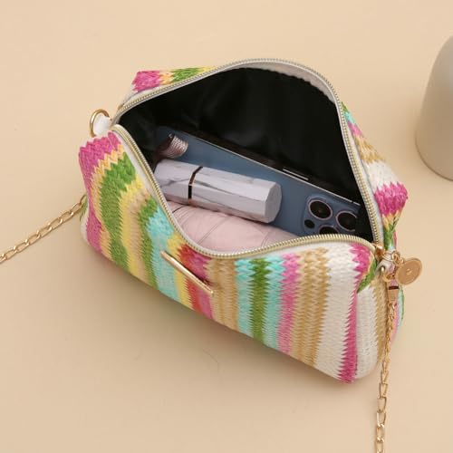 Women’s Straw Tote Bag Rainbow Striped Casual Beach Shoulder Bag Summer Vacation Straw Crossbody Bag Purse 2025 5