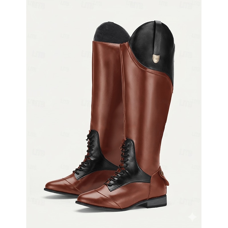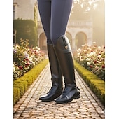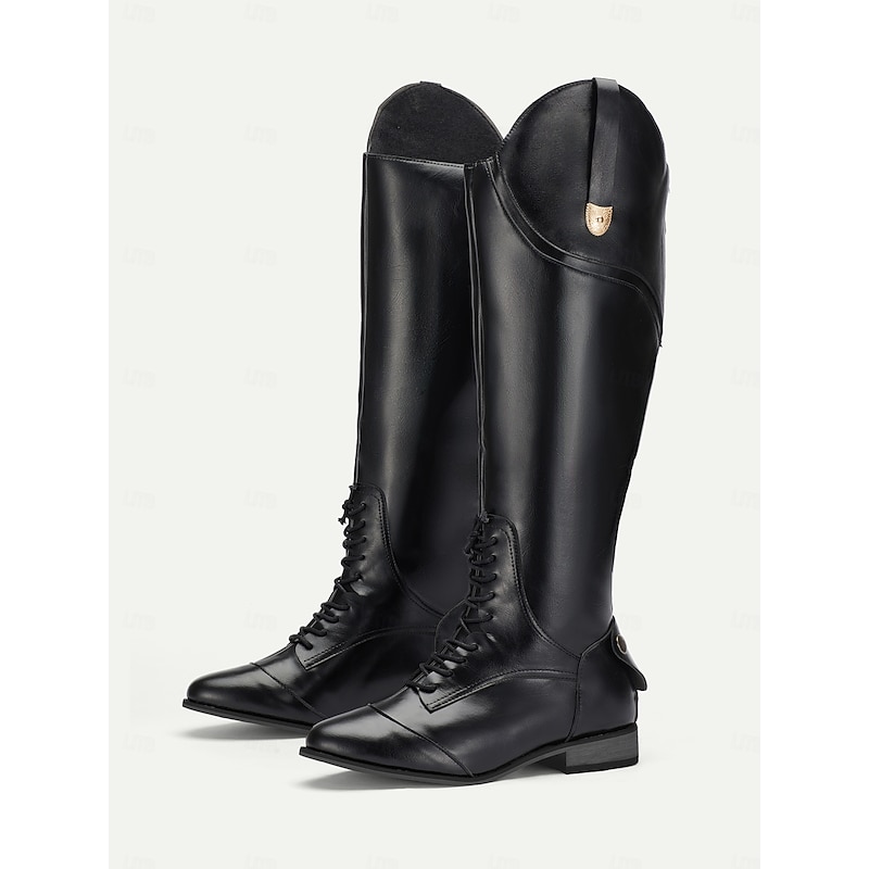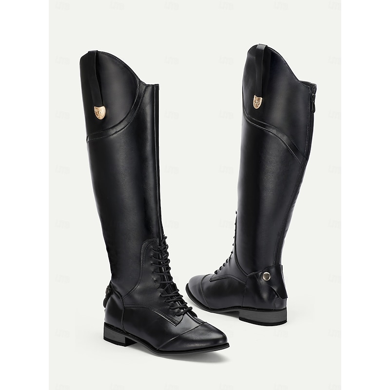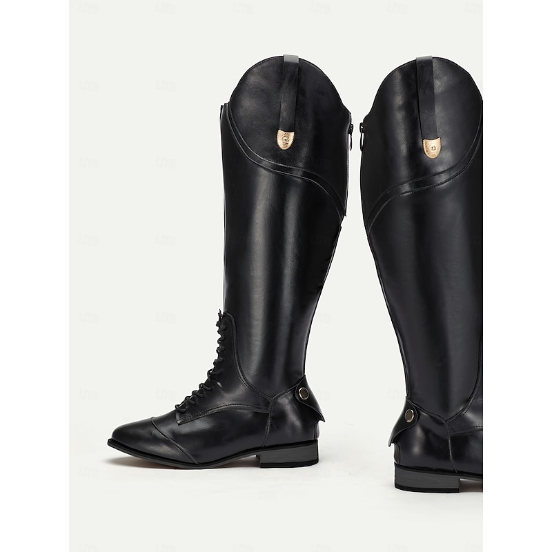 Women's Black Faux Leather Equestrian Riding Boots with Zipper Closure - Tall Knee-High Horseback Riding Boots for Outdoor and Casual Wear