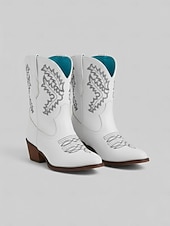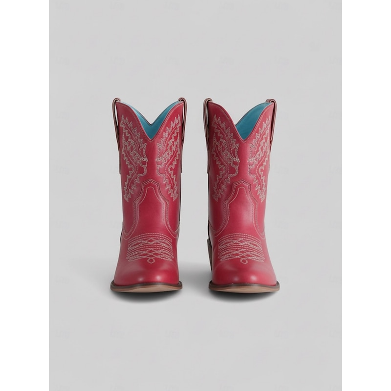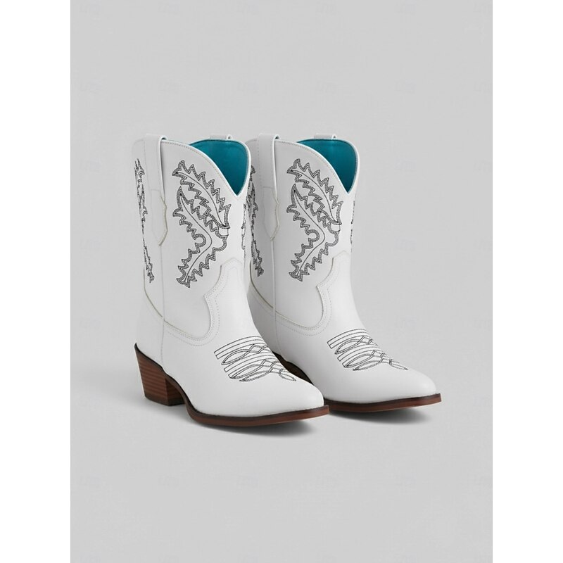 Highlights [Fabric] : Crafted from premium PU leather and faux leather, these boots offer both durability and a fashionable finish. The high-quality materials promise a long-lasting wear while maintaining a trendy appearance. [Silhouette] : The iconic pointed toe design offers a timeless Western style, perfect for a bold statement. Complemented by a mid heel, these boots provide a balance between elegance and everyday comfort. [Design Highlights] : Featuring intricate embroidery along the shaft and vamp, these boots display a mix of sophistication and traditional Western flair. The sturdy block heel adds both height and stability, while the pull tabs ensure easy wear. [Occasions] : Ideal for a variety of occasions, these boots seamlessly transition from casual outings to more dressy events, making them a versatile addition to your wardrobe. Perfect for daily walks, a night out, or any event where you want to add a touch of Western charm. [Size Range] : Available in a wide range of sizes from 34 to 43, these boots cater to a broad audience, ensuring a comfortable fit for various foot sizes. The UK size 14.5 and EU size 50 options allow for even greater inclusivity.