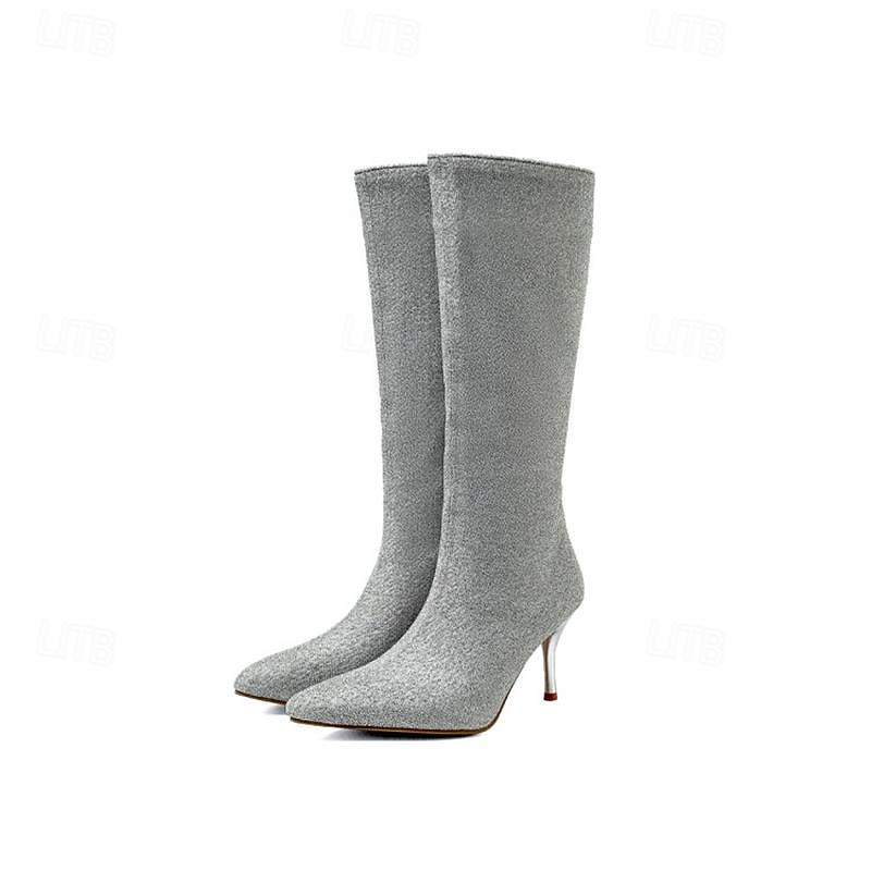 popular ! Women's Sparkly Knee-High Stiletto Boots – Elegant Pointed Toe Heeled Dress Boots for Evening Parties, Weddings, and Holiday Events