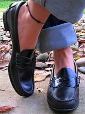 Highlights [Fabric] : Expertly crafted from high-quality PU materials, these loafers offer durability and a comfortable fit, perfect for both spring and fall seasons. The PU upper ensures a refined appearance while providing easy maintenance and lasting wear. [Style] : Designed with a iconic penny loafer silhouette, these shoes embody vintage charm with their sleek lines and elegant hand-stitched detailing. The low block heel and slip-on design provide both ease and stability, making them a versatile choice for various occasions. [Design Highlights] : Featuring a timeless round toe and solid color pattern, these loafers effortlessly blend style and comfort. The durable rubber outsole offers excellent traction, while the hand-stitched detailing along the vamp adds a touch of sophistication and craftsmanship. [Occasions] : Ideal for daily wear, these classic loafers are suitable for both casual and formal settings. Whether you’re attending a meeting, enjoying a weekend outing, or simply running errands, these versatile shoes pair effortlessly with chinos, tailored trousers, or even jeans for a polished look. [Size Notice] : Available in a wide range of sizes from US5.5 to US10.5, including EU and UK equivalents. These loafers are designed to fit standard sizes, so it's recommended to select your usual size for a comfortable fit. Perfect for everyday use. excellent materials and excellent craftsmanship ensure long-lasting durability.