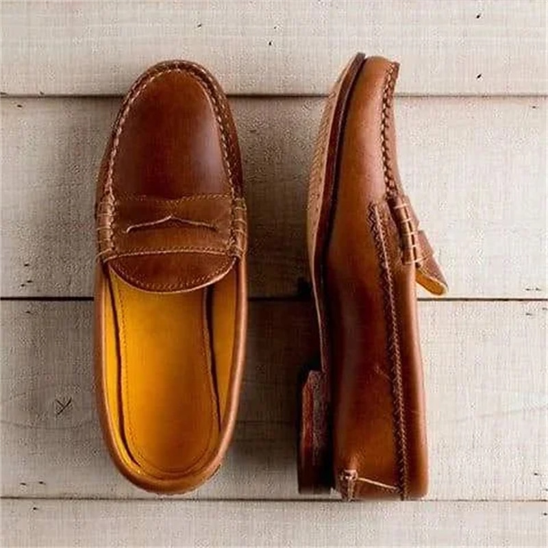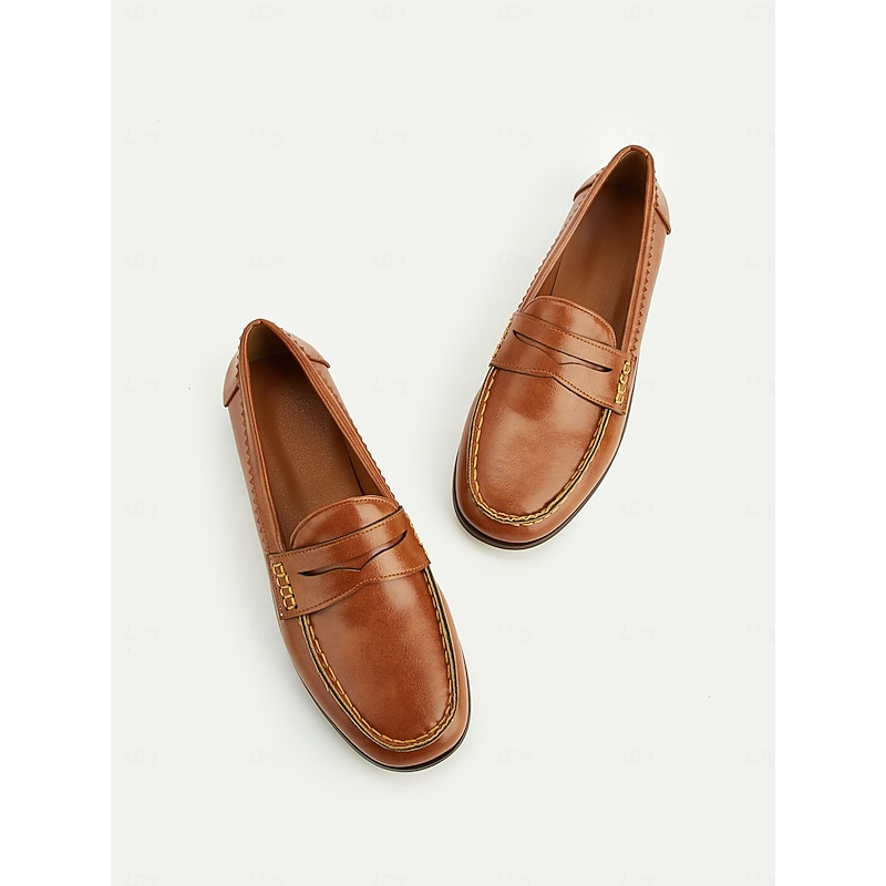 Women's enduring Brown Faux Leather Loafers – cushy Slip-On Driving Shoes with Hand-Stitched Detailing for Casual and Formal Wear