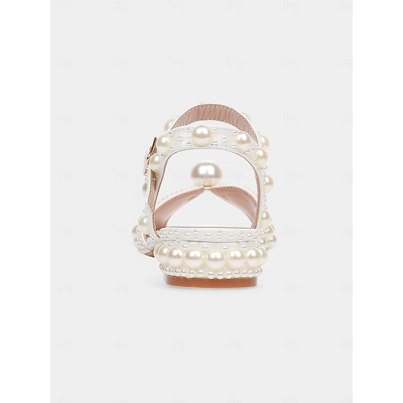 Women's White Pearl-Embellished Low Heel Sandals – Elegant Open-Toe Wedding & Prom Shoes 14
