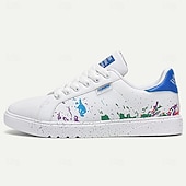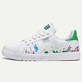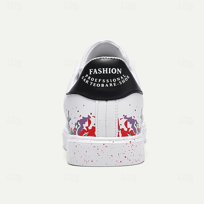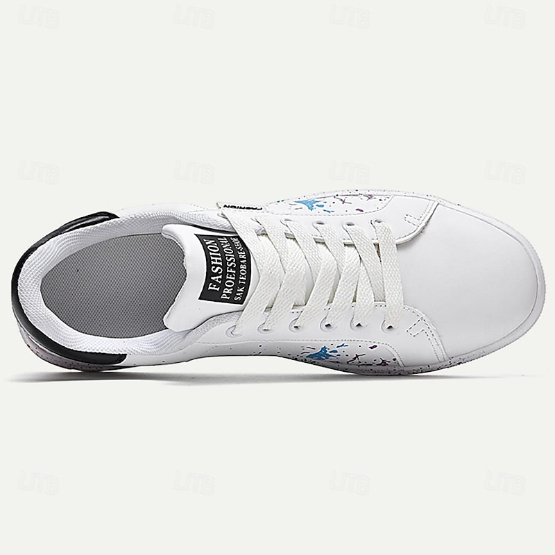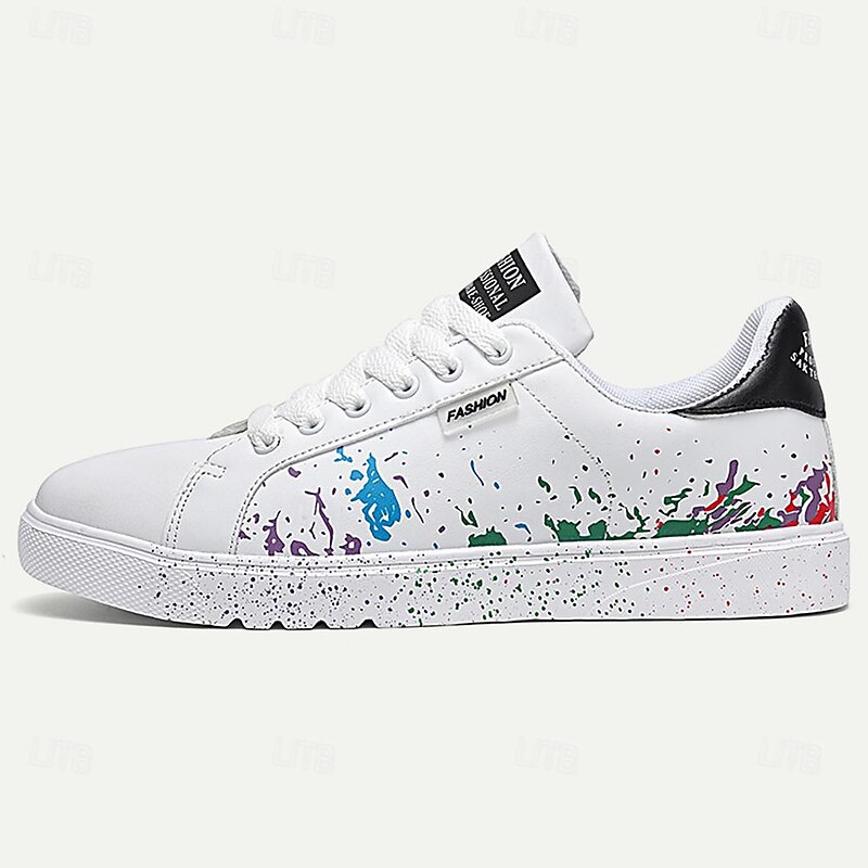 Highlights [Fabric] : Crafted from high-quality PU leather, these men's sneakers provide a durable and comfortable experience, perfect for daily wear. The interior features soft PU lining, enhancing overall comfort and support for extended use. [Design Fit] : Designed as a low-top sneaker with a iconic round toe shape, these shoes ensure a versatile and contemporary fit. The lace-up closure guarantees a secure and customizable fit, accommodating various foot shapes comfortably. [Design Highlights] : These sneakers showcase a vibrant and artistic color splash design, with a playful mix of blue, green, and purple hues on both the sides and soles, set against a classic white base. The green accent on the heel provides a refreshing pop of color, making the shoes stand out in any crowd. [Occasions] : These sneakers are perfect for a range of occasions, from casual outings and weekend gatherings to everyday activities. They blend fashion with functionality, making them an ideal choice for those looking to make a bold style statement while staying comfortable. [Size Range] : Available in a variety of sizes, from US6 to US11, catering to a wide range of foot sizes, ensuring that most men can find their perfect fit with ease. Perfect for everyday use. supreme materials and excellent craftsmanship ensure long-lasting durability.
