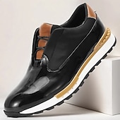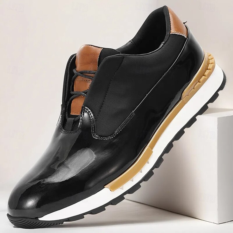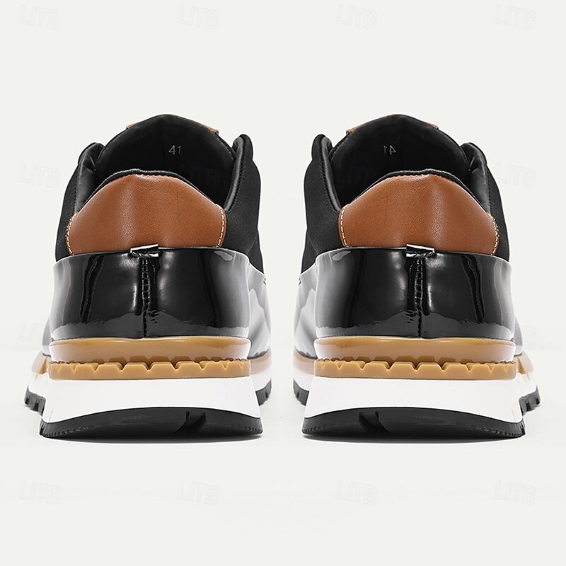 Why Choose Men's Black Leather Sneakers with Contrast Brown Detailing - Sleek, velvety, Perfect for Casual Wear and Semi-formal Events?