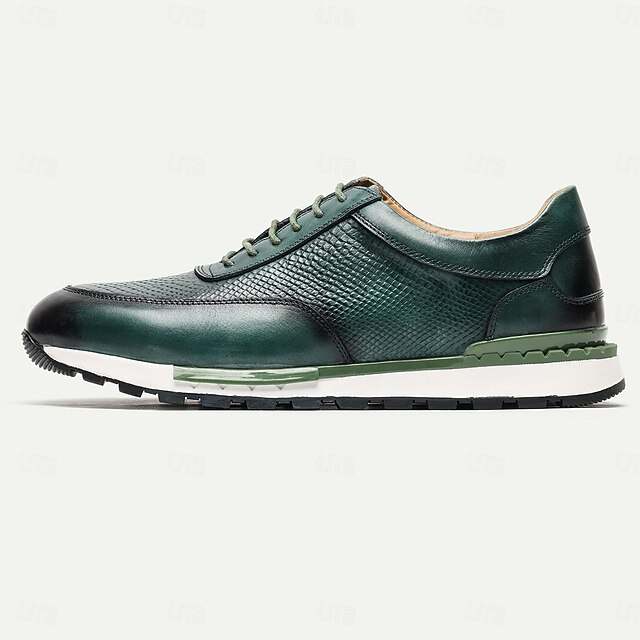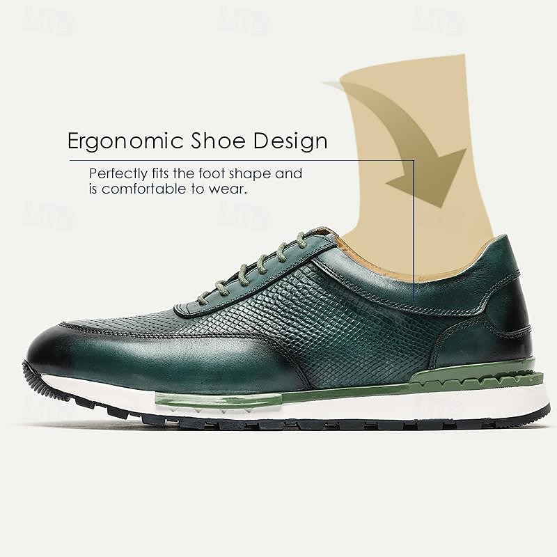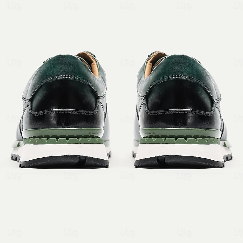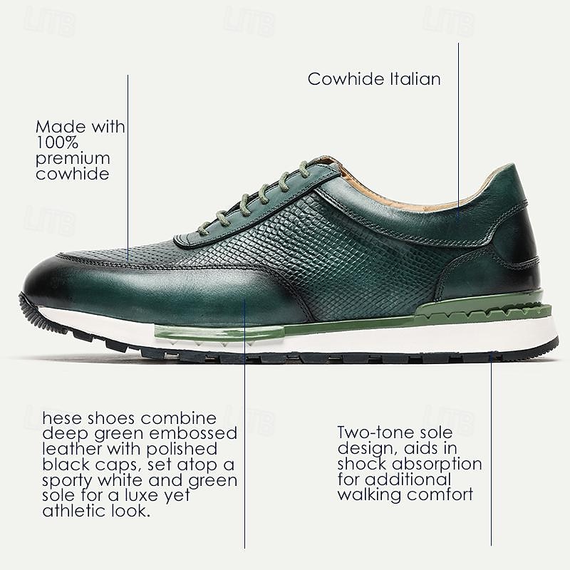 More information about Men's Dress Sneakers Leather Italian Full-Grain Cowhide Slip Resistant Lace-up Dark Green