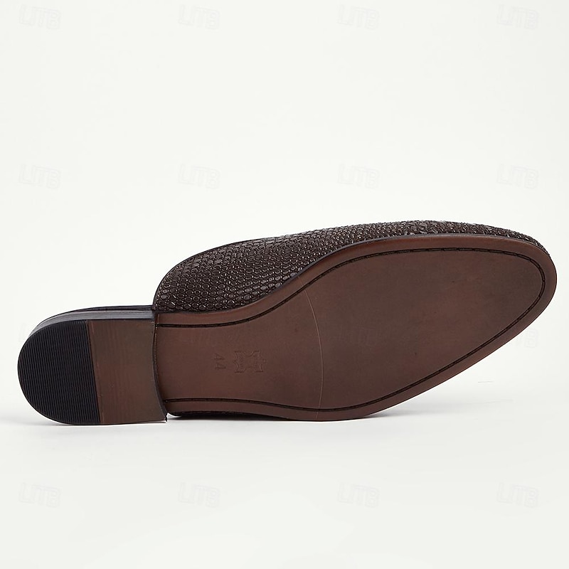 popular ! Men's Leather Slip-On Mules - Crocodile Patterned Casual Loafers for Formal and Casual Occasions