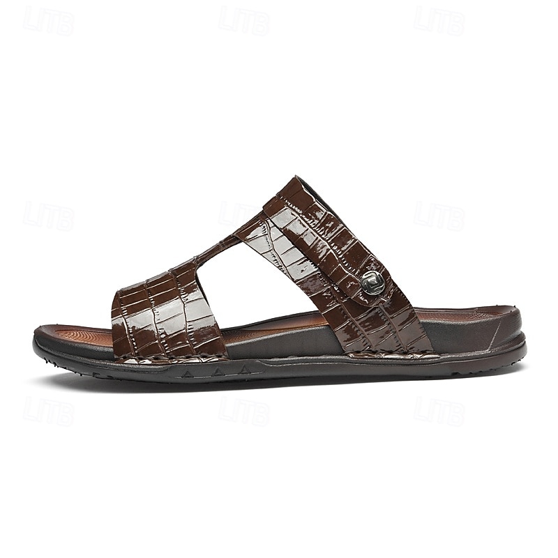 Why Choose Men's Brown Crocodile Pattern Sandals with Adjustable Strap, sleek Design for Casual, Outdoor and Summer Wear?