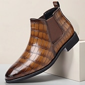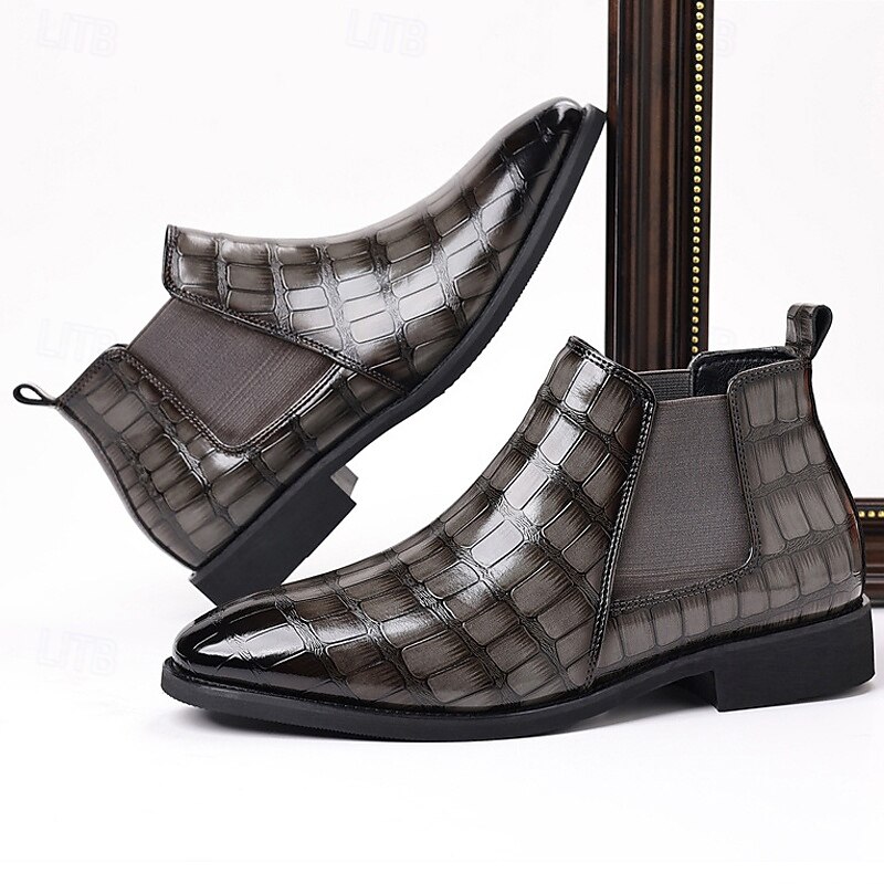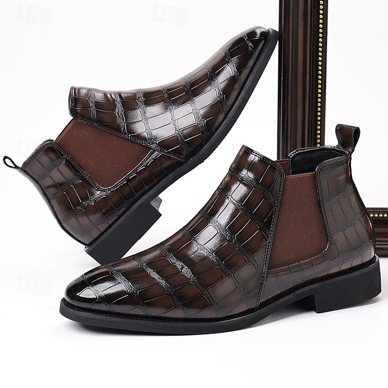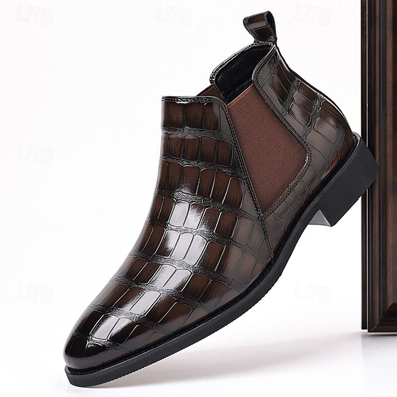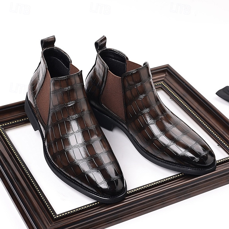 Why Choose Men's Brown Crocodile Pattern Chelsea Boots – Slip-On Faux Leather Ankle Dress Boots for Business, Formal Events and Daily Wear?