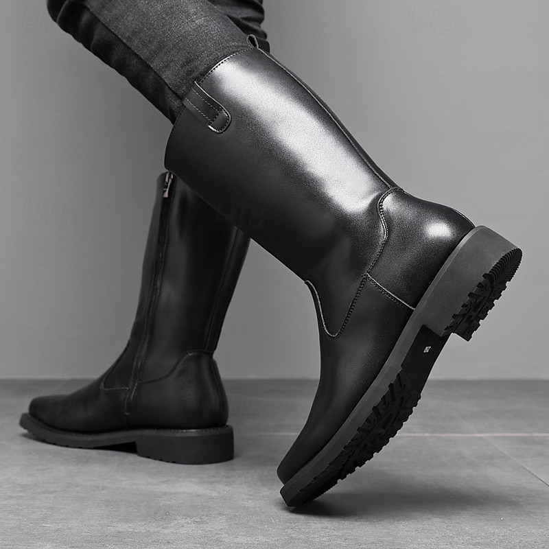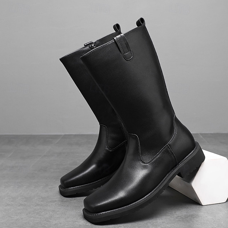 At www.3decard.com, we believe in providing our customers with only the best products. This Men's Black Faux Leather Work Riding Boots – Durable Mid-Calf Cowboy Boots with Sturdy Sole for Outdoor, Farm and Everyday Wear is designed with attention to detail and high quality craftsmanship that you can see and feel. Whether you're looking for functionality, style, or both, this product delivers exceptional value.