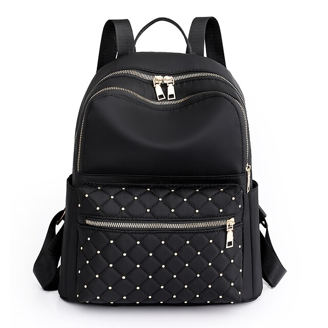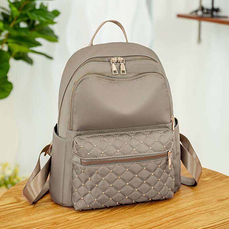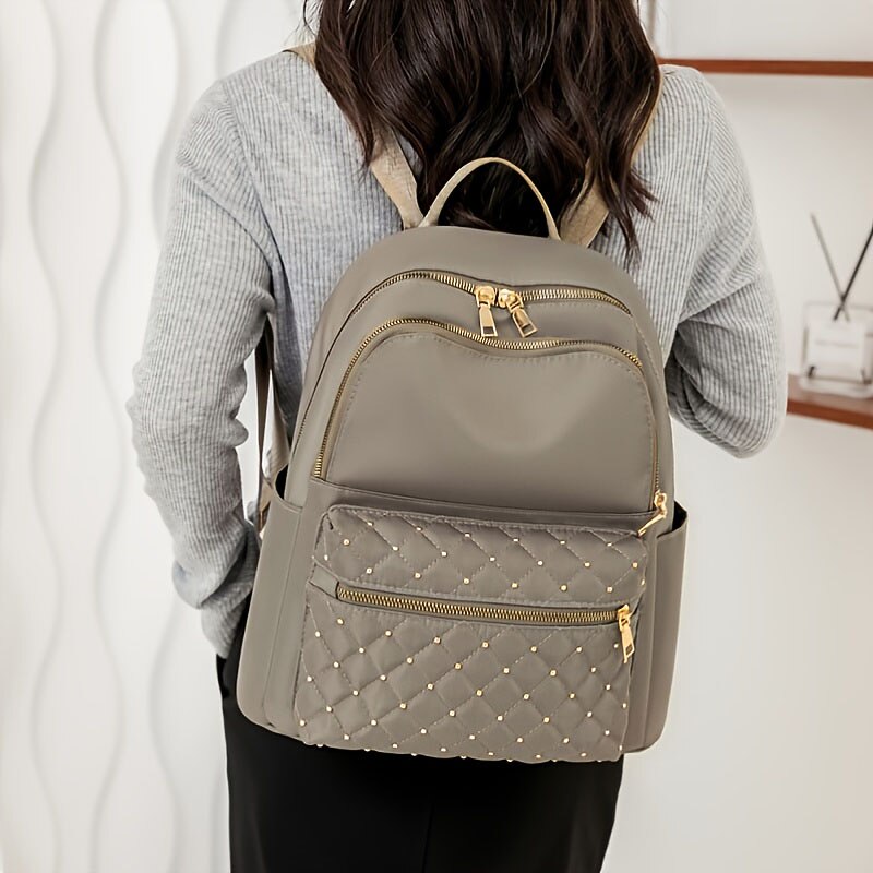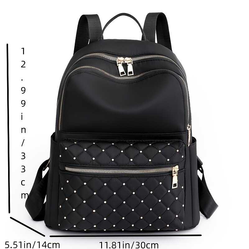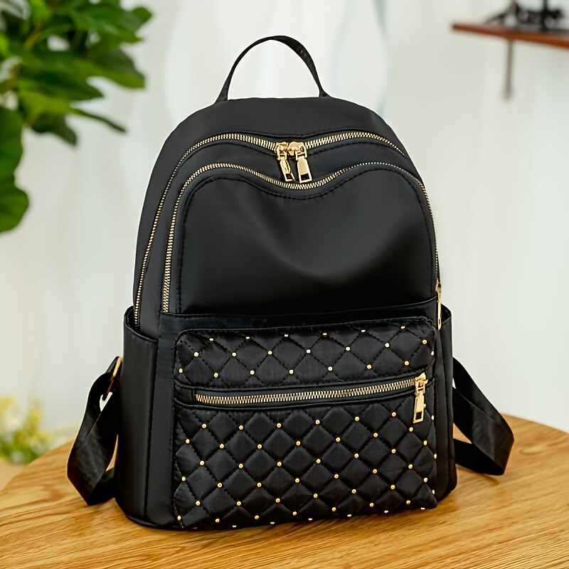 Why Choose Women's Black Quilted Nylon Backpack with Gold Zippers and Studded Front Pocket – sleek Lightweight Bag for School, Work, or Daily Use?