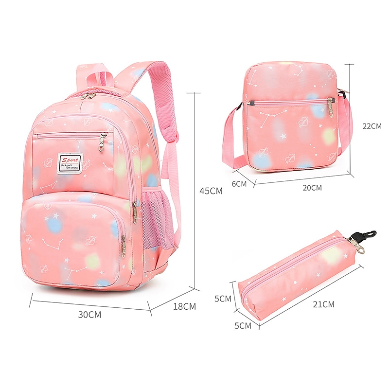 3-Piece Geometric Print School Backpack Set – Large Capacity Bookbag with Crossbody Bag and Pencil Case for Boys and Girls, rugged and Water-Resistant for Middle & High School