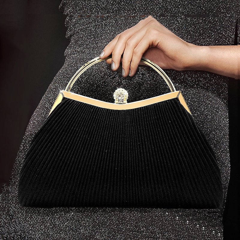 popular ! Women's Clutch Evening Bag Clutch Bags PU Leather Party Bridal Shower Holiday Rhinestone Large Capacity Solid Color Silver Black Gold