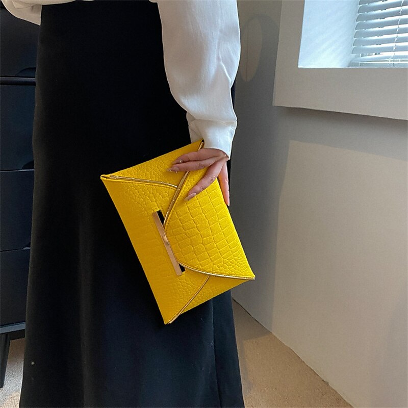$14.99 - Women's Yellow Croc-Embossed Envelope Clutch with Metal Handle and Textured Faux Leather, Bold Evening Bag for Cocktail Parties, Weddings and Night Out 2025. Shop for cheap Clutches & Evening Bags online? Buy at lightinthebox.com on sale today!