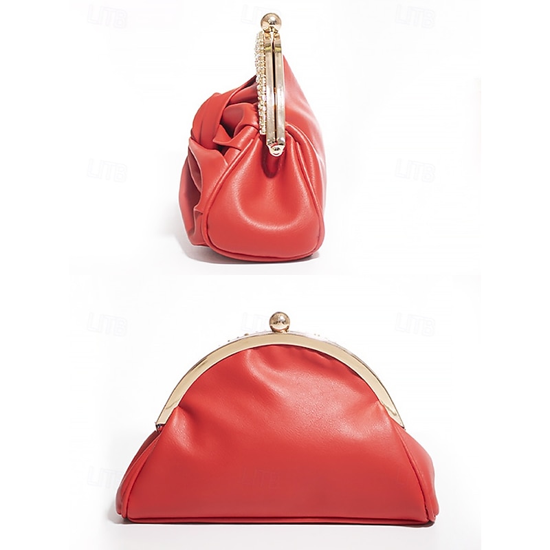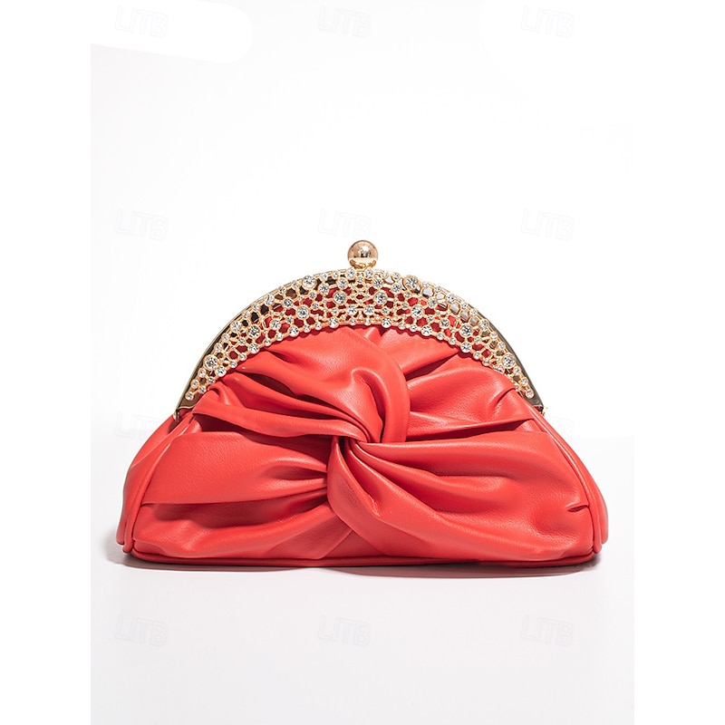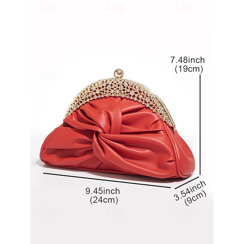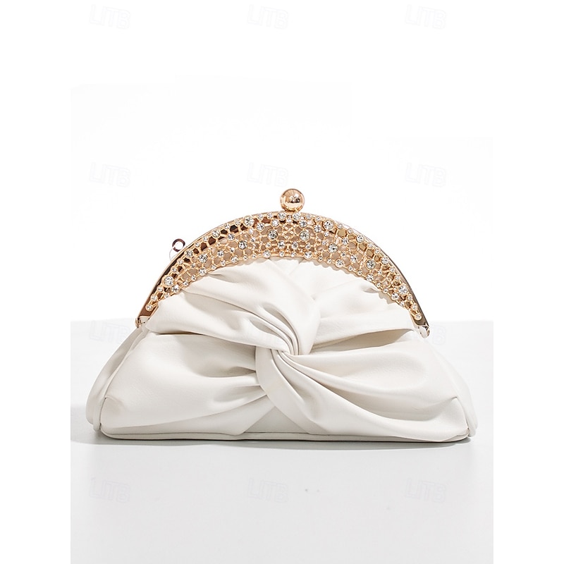 popular ! Women's Faux Leather Evening Clutch Bag – Rhinestone Embellished Vintage Knot Design Purse for Weddings, Parties and Formal Events Color Silver Black White