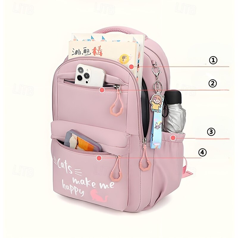 $32.99 - Girls' Cute Cat Print School Backpack with Keychain, Lightweight Waterproof Bookbag, Pink Purple Blue Black 2025. Shop for cheap Kids & Teen Backpacks online? Buy at lightinthebox.com on sale today!