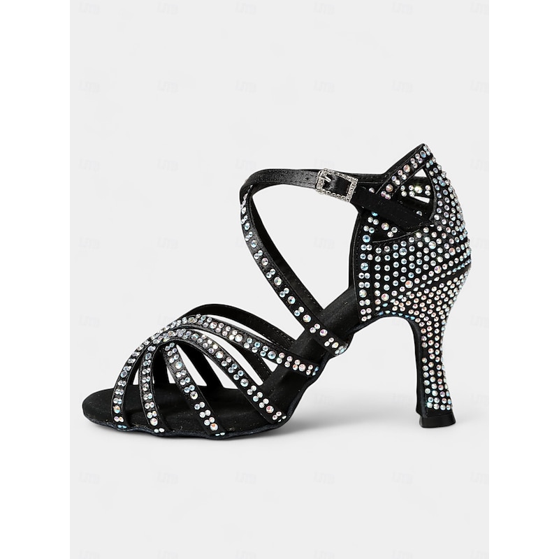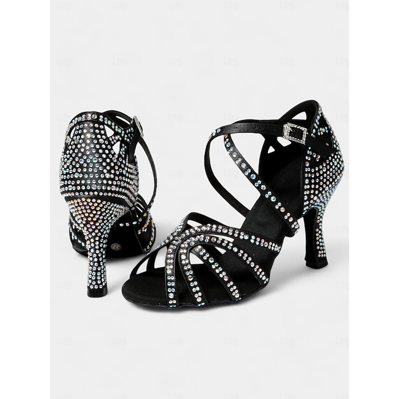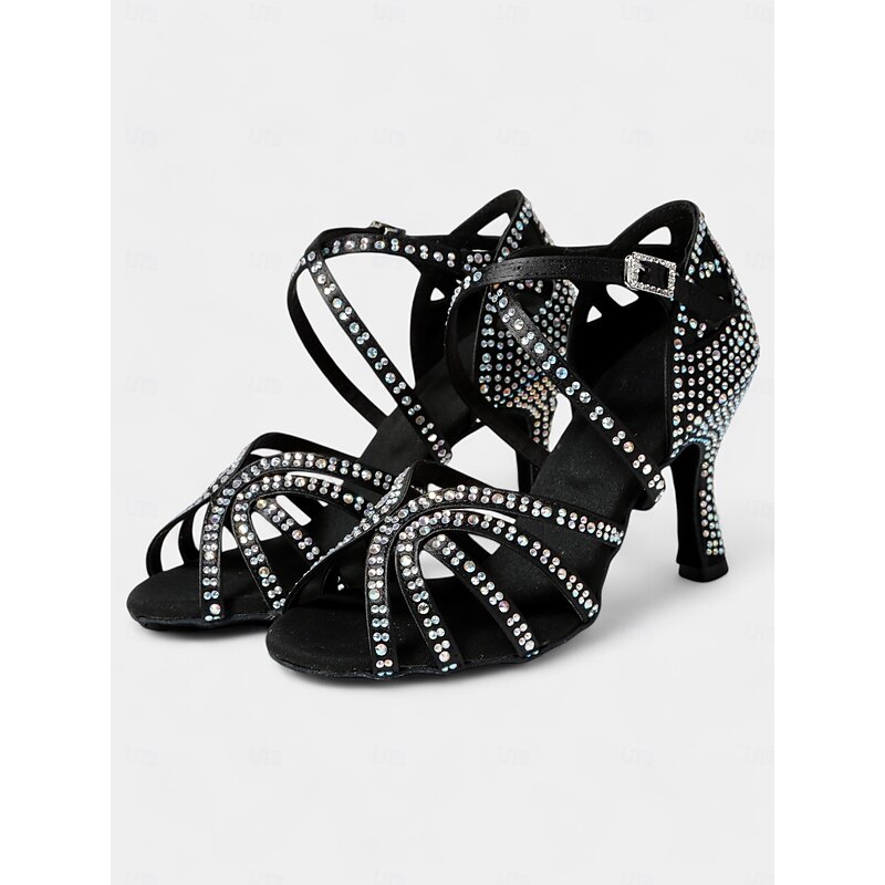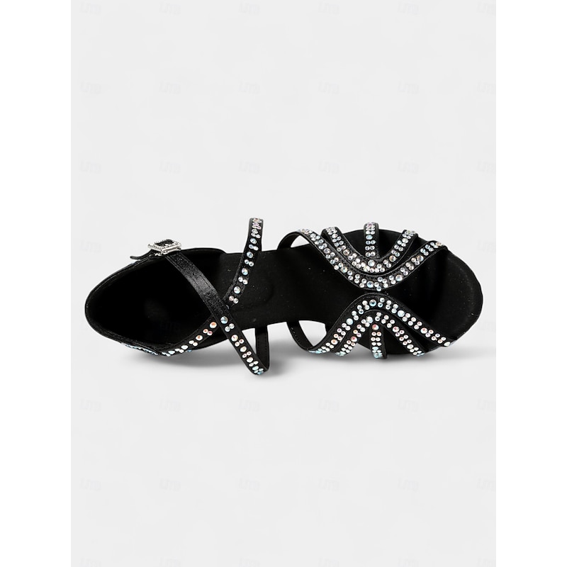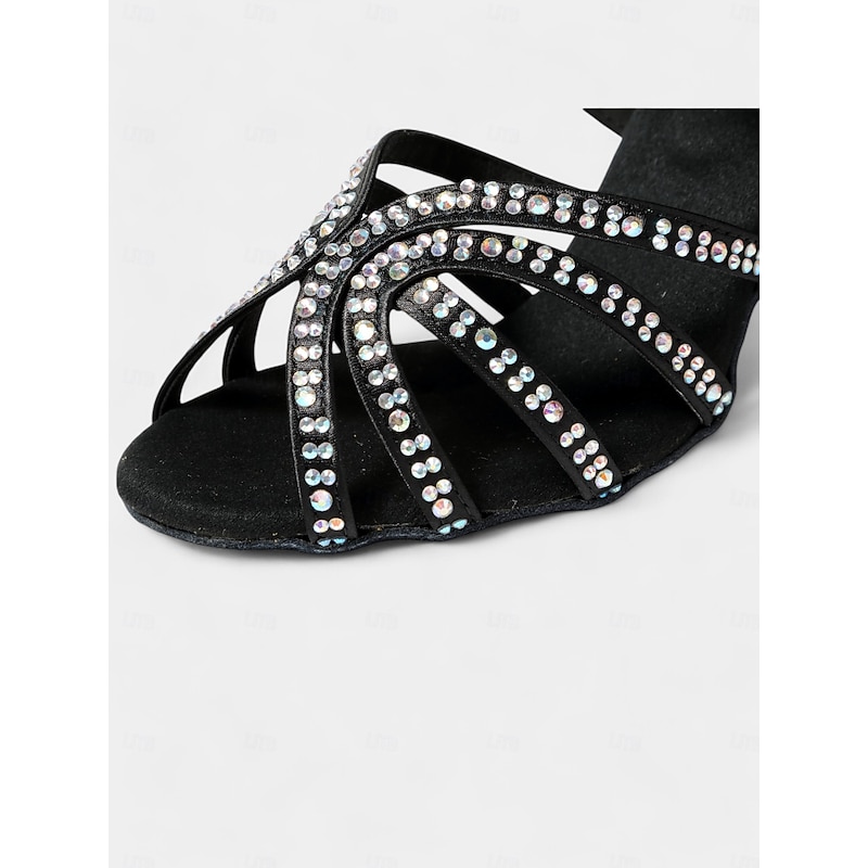 More information about Women's Black Rhinestone Latin Dance Heels with plush Suede Sole – Sparkling Open-Toe Ballroom Shoes for Salsa, Tango & Party Events