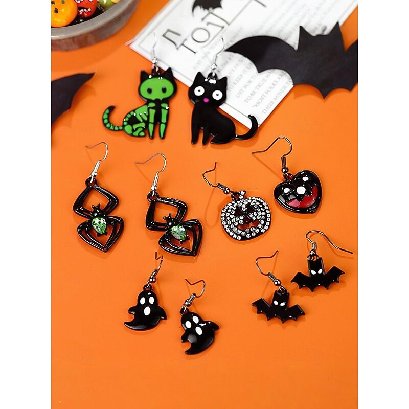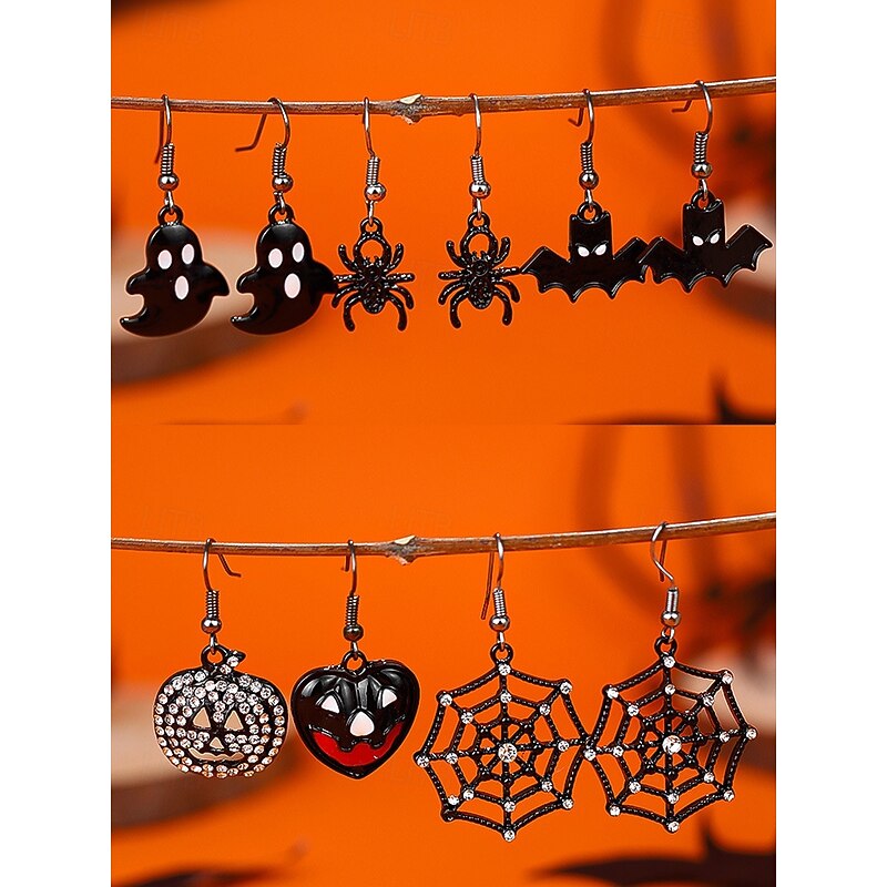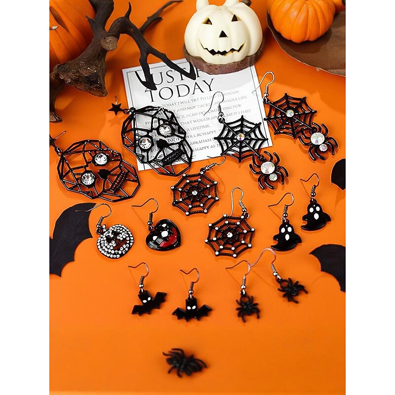 $7.99 - Women's Halloween Dangle Earrings Set — Spider Web & Spider, Skull, Bat & Ghost Designs, Lightweight Black Alloy with Rhinestone Accents, Gothic Style for Costume Parties, Cosplay & Night Out 2025. Shop for cheap Halloween Accessories online? Buy at lightinthebox.com on sale today!