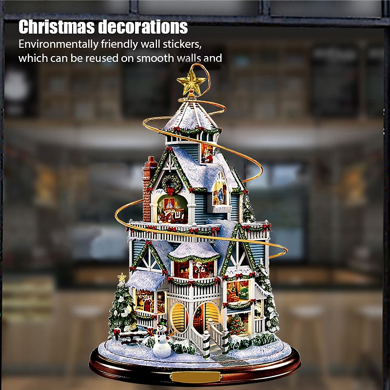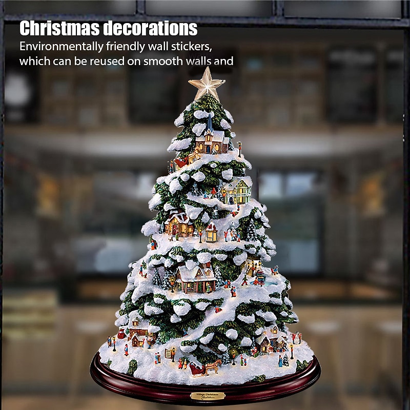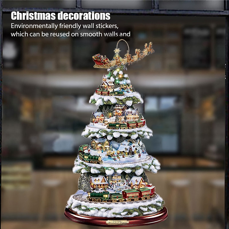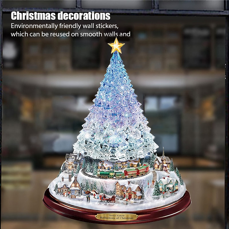 Why Choose Christmas Window Stickers Tree Winter Garland Window Stickers Home Decoration Crystal Tree Santa Claus Snowman Rotating Sculpture Decorations Removable Paste?