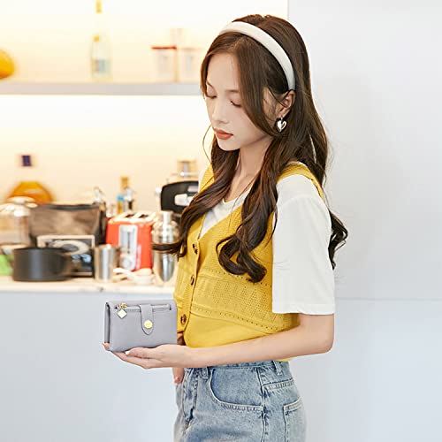 popular ! Wallets for Women Rfid Small Wallet for Women Billfold Ladies Wallet Leather Bifold Card Holder with Removable Zipper Coin Purse (Grey)